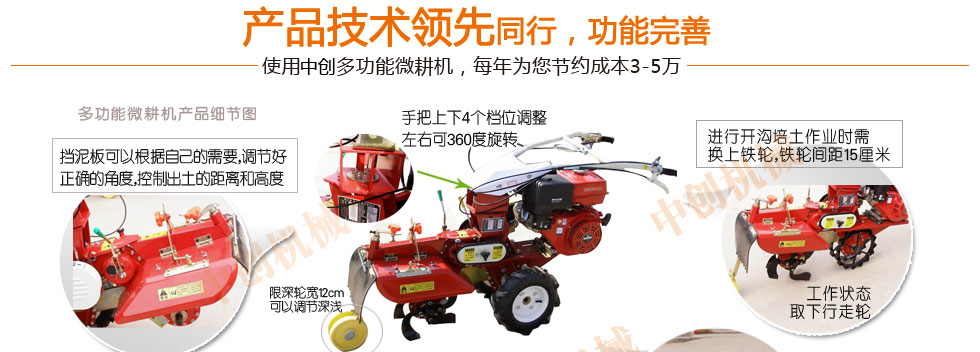 濰坊市中創機械有限公司致力于為客戶打造高質量的微耕機,田園管理機,開溝培土機等產品的服務。公司先后在上海、廣東、河北、青島、北京增設生產基地與服務聯絡點能更好的服務客戶。公司的發展離不開社會各界的支持與厚愛,生產經營規模穩步擴大,公司下設總面積在不斷擴大。本司將致力于不斷的改進產品生產工藝和品質,以質取榮以信贏客以過硬的產品質量,用戶第一、信譽第一、質量第一是我們一貫的原則。隨著我們的發展與完善,誠實的品格愿與您攜手共進,共創雙贏。